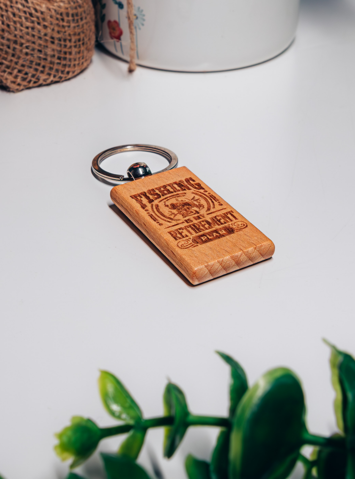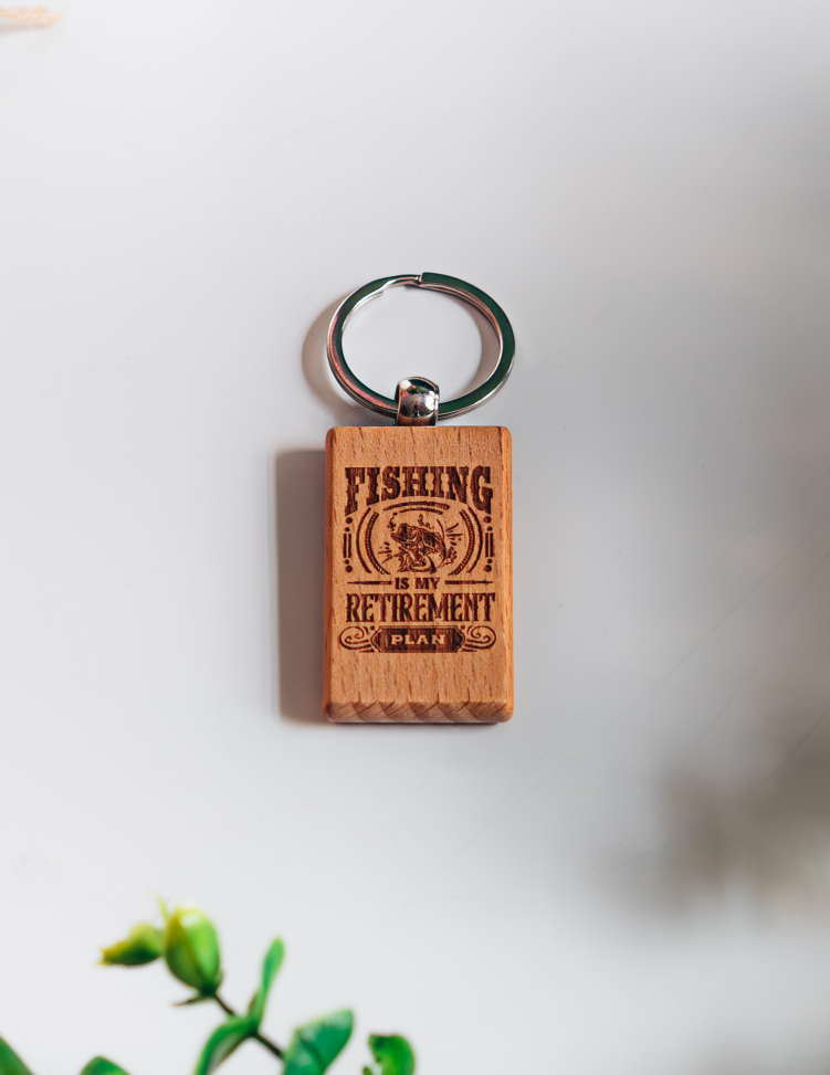 Fishing Is My Retirement Plan Engraved Wooden Keyring