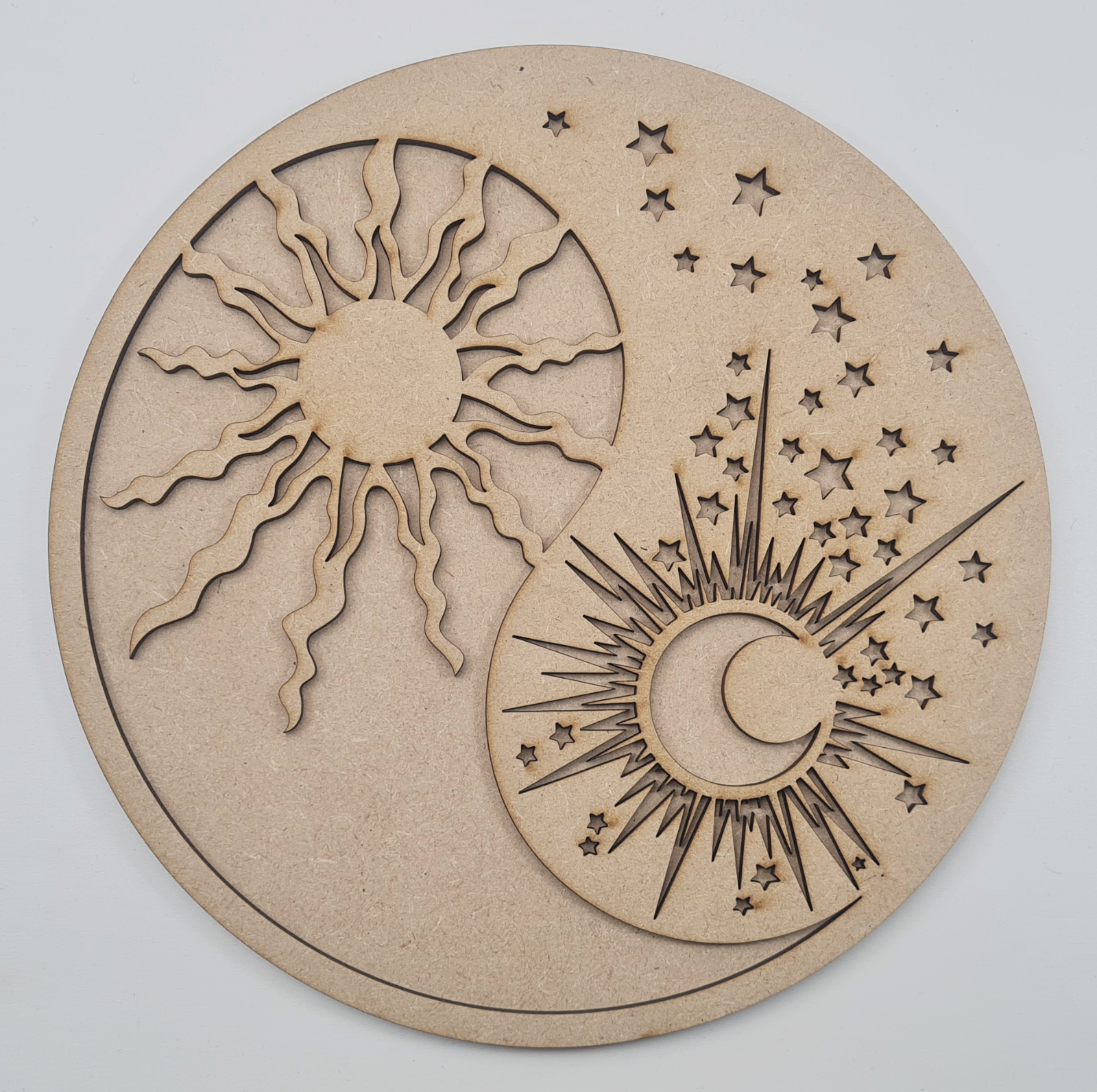 1 x MDF Wooden Sun Moon Yin Yang Sign